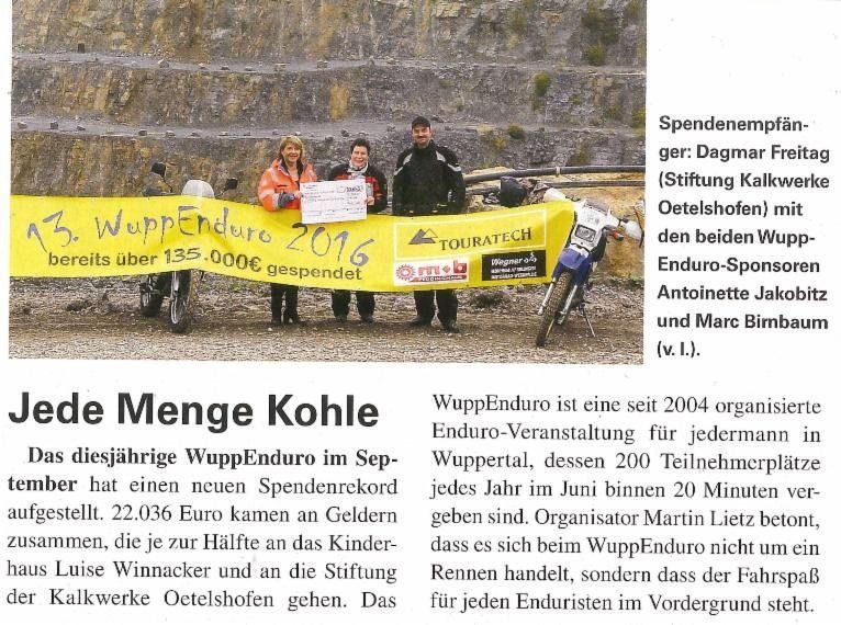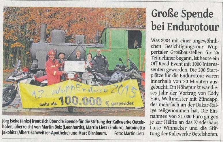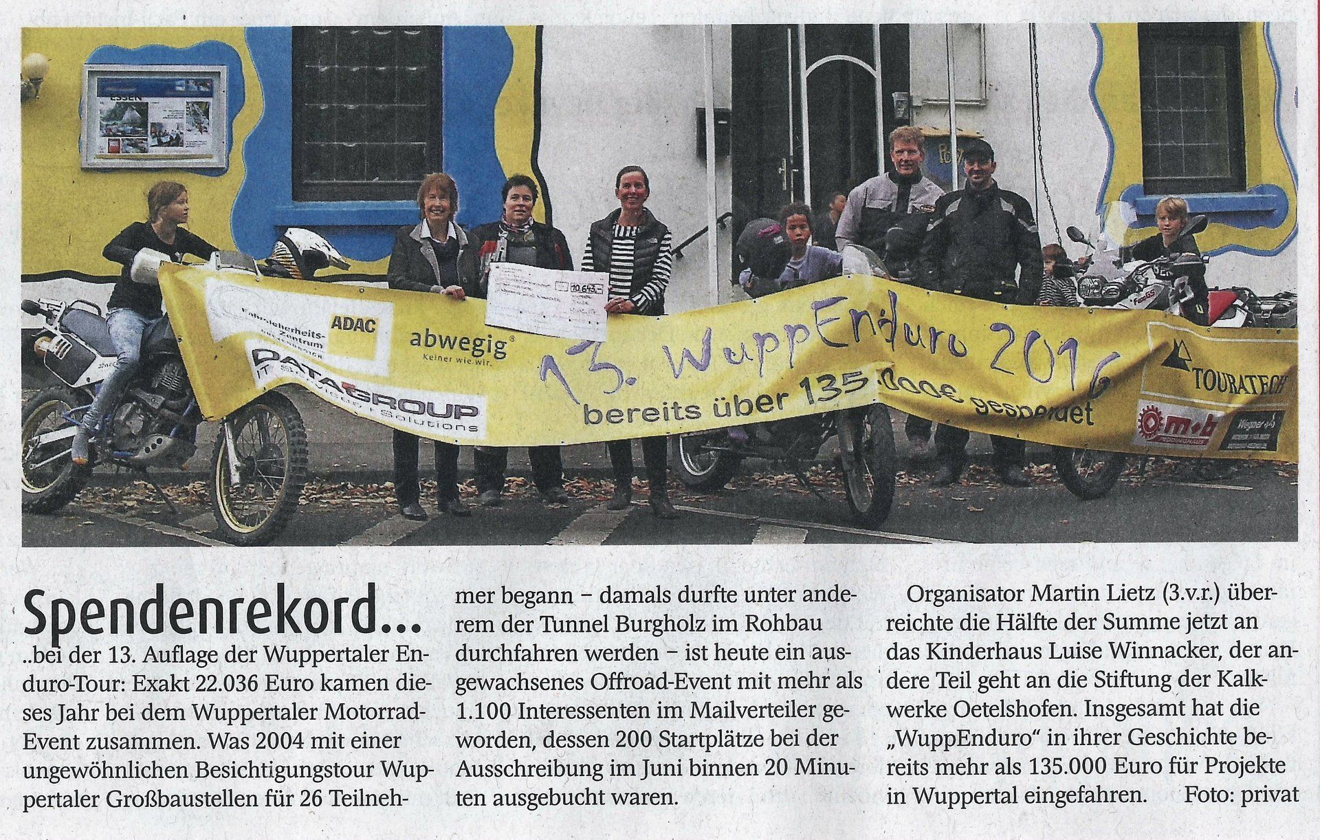 Artikel Wuppertaler Rundschau Spendenübergabe
