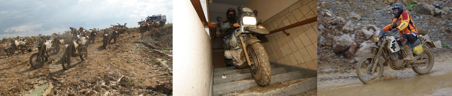 - Bei Regen und Schlamm könnte das Motorrad und auch der/die Fahrer/in sehr dreckig werden! (Nicht lachen! Das war nicht jedem klar!) Endurofahren bedeutet nun mal Dreck!