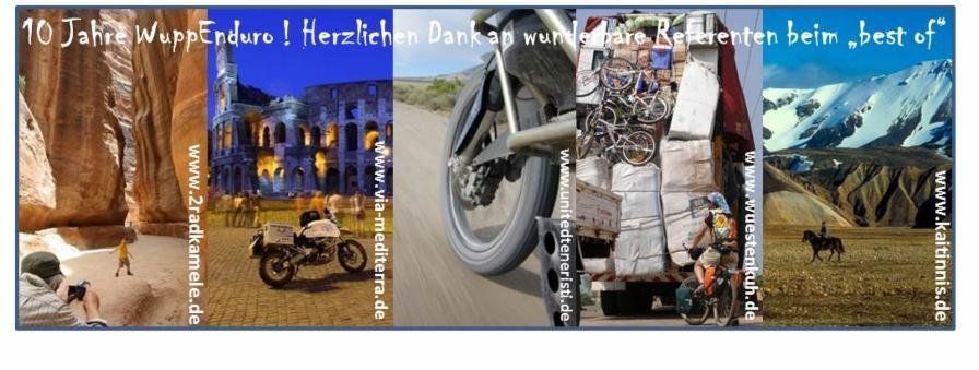 Der Enduro-Welt-, Europa- und Deutsche Meister sowie Sieger der Dakar Marathon-Klasse wird nicht nur die Stationen seiner Karriere beleuchten. Er wird auch ganz im Sinne der WuppEnduro-Reisevorträge von seinen Motorradreisen berichten. Jetzt schon kann man also den 11.09.2015 als besonderes Ausrufezeichen im Kalender eintragen. Wie immer im Hörsaal FZH1, Rainer-Gruenter-Str., 42119 Wuppertal, Einlass 19:30 Uhr.