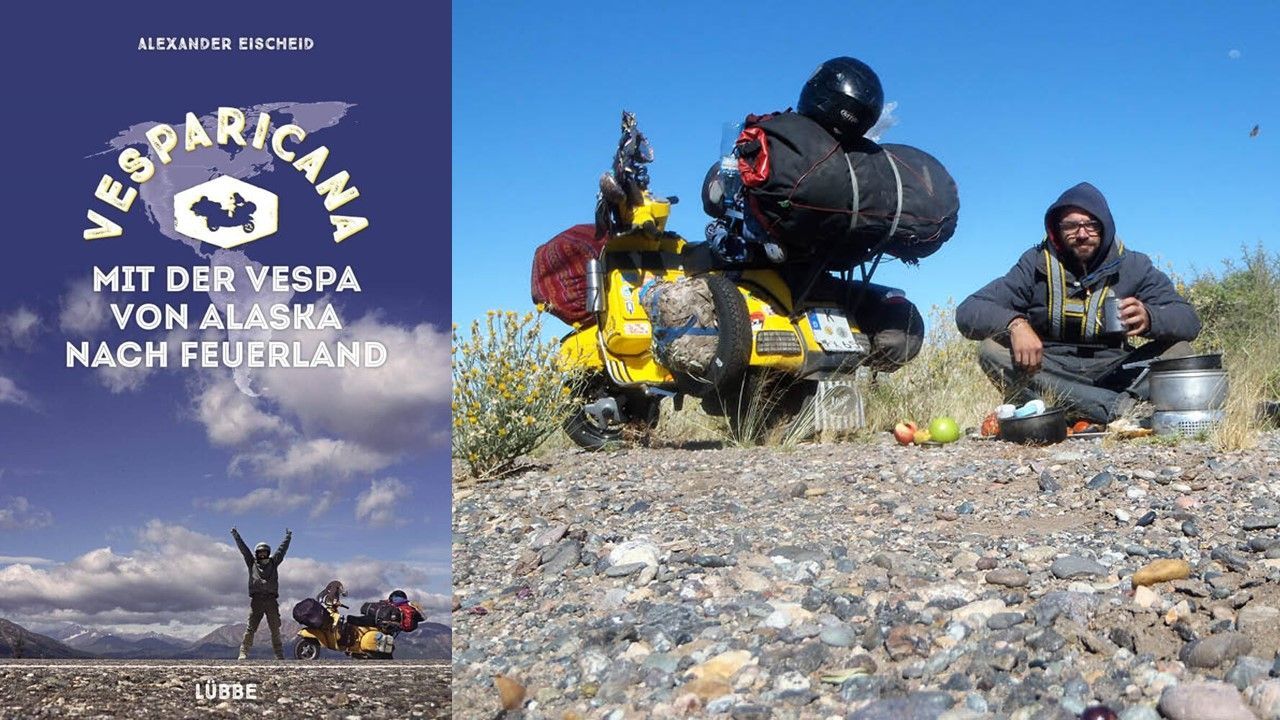 Schon damals liefen den Zuschauern die Tränen über die Wangen – so humorvoll und lebendig ist Alexander vor der Leinwand neben seiner voll bepackten Vespa hin- und hergesprungen und hat uns sein großes Abenteuer miterleben lassen.