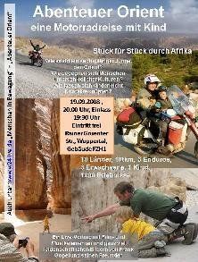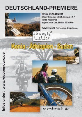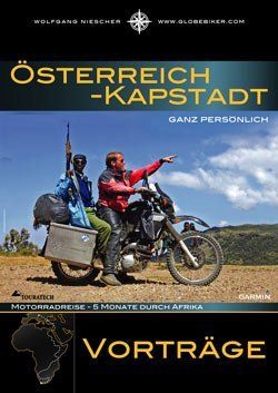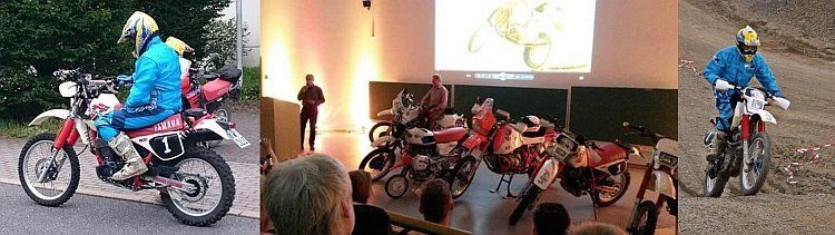präsentierte Wolfgang Niescher am Mikro ohne jegliche Soundelemente auf eine sehr humorvolle Art seine Reise durch Afrika - er war zugleich der letzte Referent im schönen Dachgeschoß. Er war aus Österreich extra für unser Event eingeflogen und konnte dank des Leihmotorrades unseres Webmasters die kompletten WuppEnduro-Sektionen miterleben, was er auch sichtlich genoss . . . .